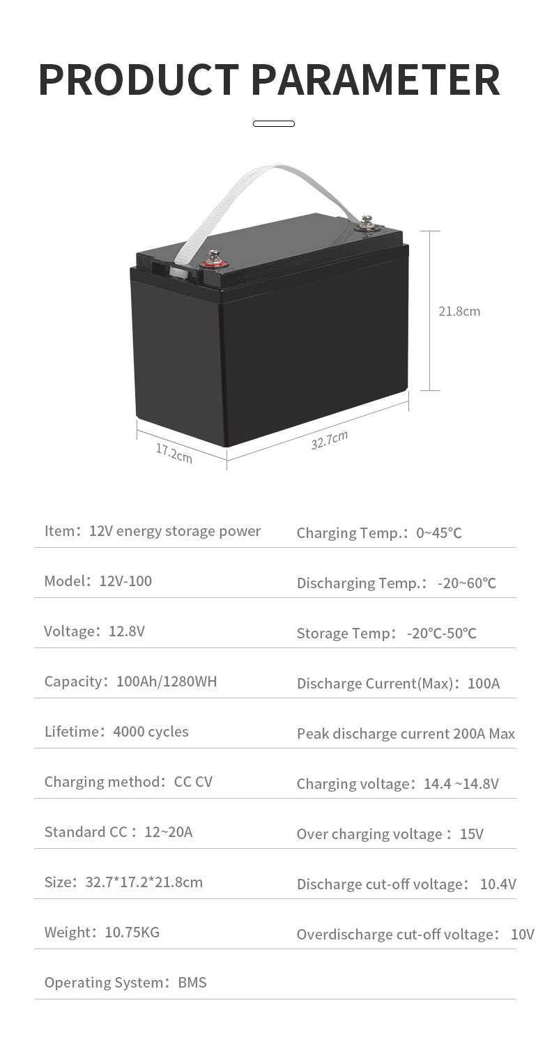 百斯顿12V磷酸铁锂电池太阳能路灯照明100A动力电池
